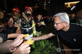 [영상]시민들에게 치킨 나눠주는 젠슨 황