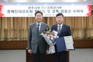 원주시 진천수 장애인 태권도팀 감독 임용장 수여