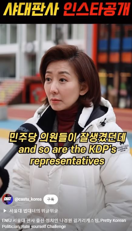 내년 총선에서 서울 동작을 출마를 준비중인 국민의힘 나경원 전 의원이 MZ세대의 숏폼(짧은 영상) 콘텐츠에 출연했다.
