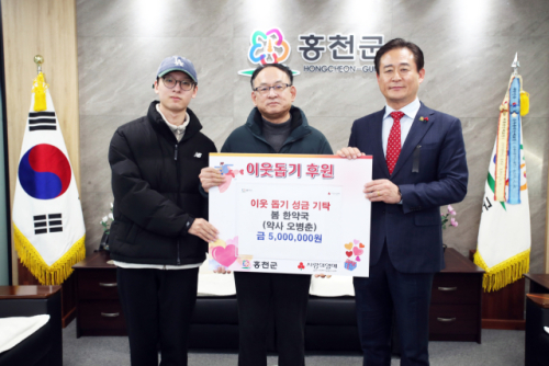 봄 한약국(약사:오병춘)은 2일 홍천군청에서 신영재 군수가 참석한 가운데 어려운 이웃돕기 성금으로 500만원을 기탁했다.