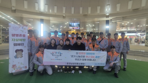 춘천남성의용소방대(대장:임태남)는 지난 19일 춘천 명동 지하상가에서 춘천시정신건강복지센터(센터장:김미정)와 함께 자살예방캠페인을 진행했다. 이번 캠페인은 지역 사회에 나눔의 온기를 전하고, 삶에 대한 희망을 함께 공유하기 위해 마련됐다.