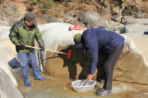 ◇영월출신 고주서 사진가가 오는 16일까지 영월문화예술회관 2층 전시장에서 개인전 '자연의 신비, 요선암'을 개최한다. 사진은 고 사진가를 비롯한 사진작가들이 오염된 암반을 닦아내는 현장.