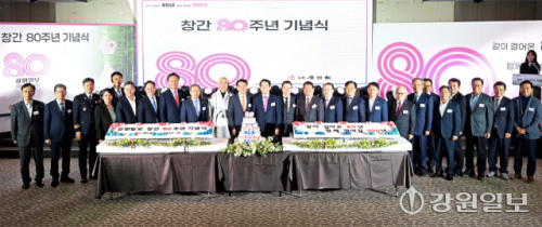 이날 기념식에는 김진태 지사와 함종한·김진선·이광재 전 지사, 송기헌·이양수·허영·박정하·유상범 국회의원, 용혜인 기본소득당 대표, 김시성 도의장, 신경호 도교육감, 퇴우 정념 월정사 주지스님 등 각급 기관·단체장 500여명이 참석해 강원도내 최고(最高·最古) 언론의 80번째 생일을 축하했다.