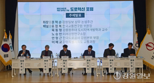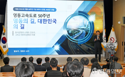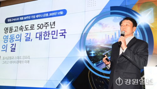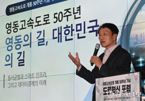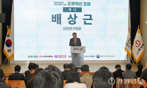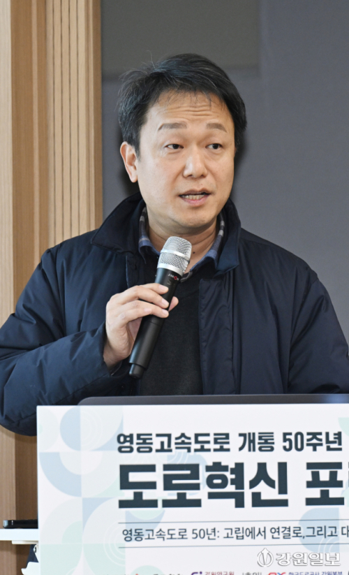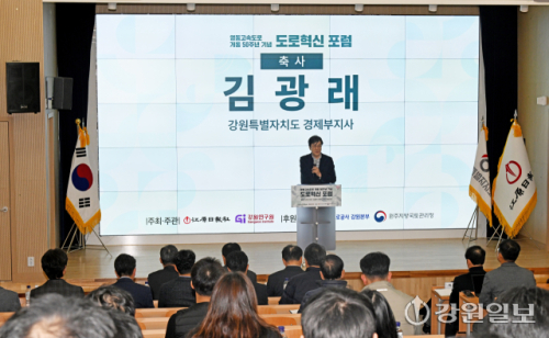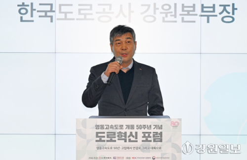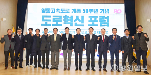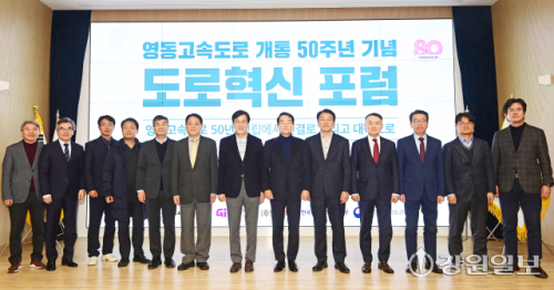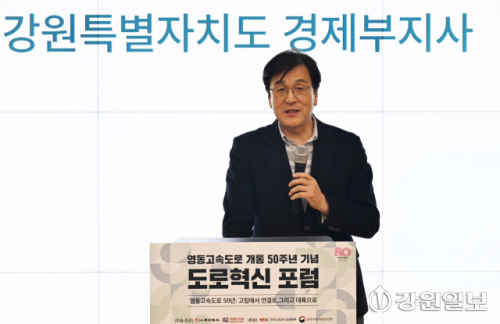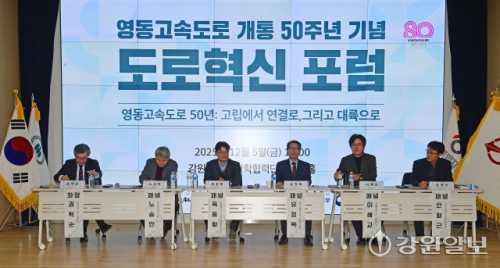 ‘영동고속도로 개통 50주년 기념 도로혁신 포럼’이 지난 5일 강원도립대 산학협력단 글로벌홀에서 박진오 강원일보 사장, 김광래 경제부지사, 배상근 강원연구원장, 황재희 한국도로공사 강원본부장, 정창수 전 국토교통부 차관 등 관계자들이 참석한 가운데 ‘영동고속도로 50년: 고립에서 연결로, 그리고 대륙으로’를 주제로 열렸다. 강릉=권태명기자