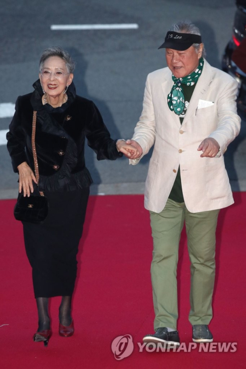 ◇손잡고 레드카펫 걷는 이장호 감독과 배우 김지미