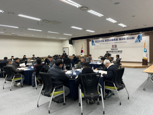 춘천시체육회(회장:이강균)는 23일 강원체육회관 대회의실에서 제4차 이사회를 열고 시체육회 제규정 일부개정(안), 시체육회 2025년도 제2차 예산변경(안), 2026년도 주요업무 계획 및 세입·세출 예산(안), 춘천시택견회(준회원단체) 탈퇴(안) 등 4개의 안건을 심의·의결했다.