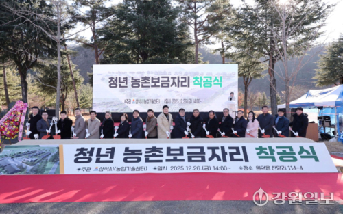청년 농업인들의 주거공간이 될 농촌보금자리 조성사업 착공식이 26일 삼척시 원덕읍 산양리 사업 부지에서 박상수 시장, 권정복 시의장과 지역주민들이 참석한 가운데 열렸다.