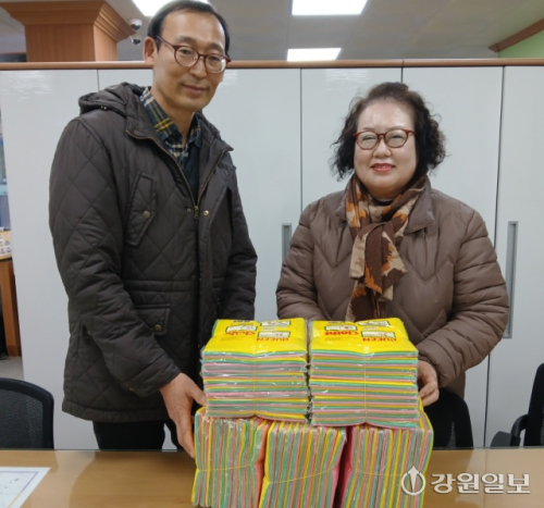 삼척시 정라동 정라28통 이상희 통장은 6일 정라동행정복지센터에 취약계층 지원을 위한 생활용품 주방 행주 150장을 기탁했다. 이 통장은 지난해에도 수세미 450개를 기탁해 이웃나눔을 실천했다.