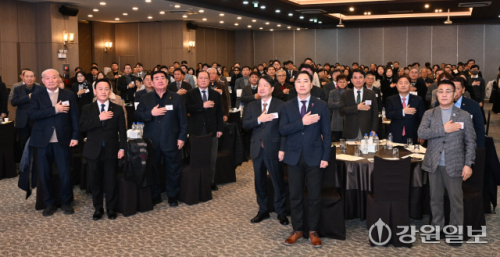 2026년 강원특별자치도 사회복지인 신년인사회 및 제14대 회장 취임식이 8일 춘천스카이컨벤션웨딩홀에서 박승용 회장, 김진태 지사를 비롯한 내빈과 사회복지인들이 참석한 가운데 열렸다.