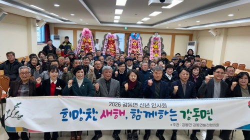 ‘2026년 강동면 신년인사회’가 지난 9일 강동복지회관에서 최익순 강릉시의장, 김억기강동면발전협의회장, 김기영, 김은숙, 신보금 시의원, 김은희 강릉시장부인, 곽연화 강동면장 등 유관기관 및 자생단체 회원, 의원, 주민 등 100여 명이 참석한 가운데 열렸다.