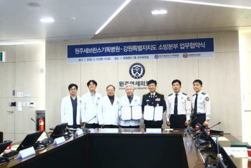 강원특별자치도소방본부는 19일 원주세브란스기독병원과 중증응급환자 이송 체계 구축 등 도민 생명 보호를 위한 업무협약(MOU)을 원주세브란스기독병원에서 체결했다.