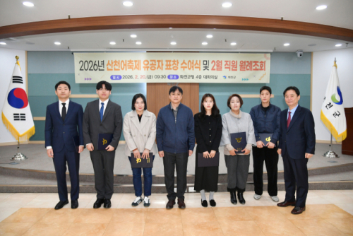 2026 화천산천어축제 유공자 표창 수여식 및 2월 월례조회가 20일 화천군청에서 최문순 군수, 안중기 부군수를 비롯한 축제 종사자, 군부대 관계자, 군청 전 직원들이 참석한 가운데 열렸다.2026 화천산천어축제 유공자 표창 수여식 및 2월 월례조회가 20일 화천군청에서 최문순 군수, 안중기 부군수를 비롯한 축제 종사자, 군부대 관계자, 군청 전 직원들이 참석한 가운데 열렸다.