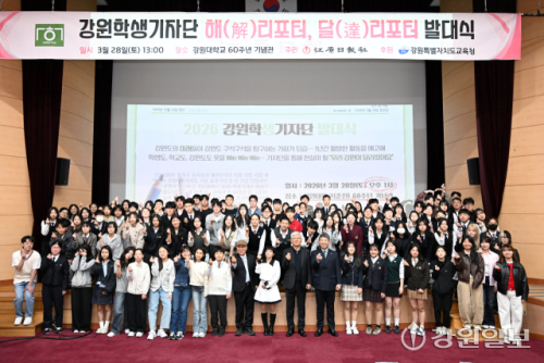 2026 강원학생기자단 해(解)리포터·달(達)리포터 발대식이 28일 강원대 춘천캠퍼스에서 학생기자단 104명과 김영래 강원일보 전무이사, 김진규 도교육청 공보담당관, 장복한 강원교육아카데미 대표, 한은영 춘천교대 연구원이 참석한 가운데 열렸다.
