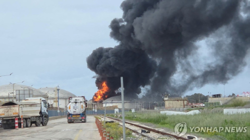 ◇3월 30일 미사일 공격으로 연기가 나는 하이파의 정유 시설[로이터 연합뉴스 재판매 및 DB 금지]
