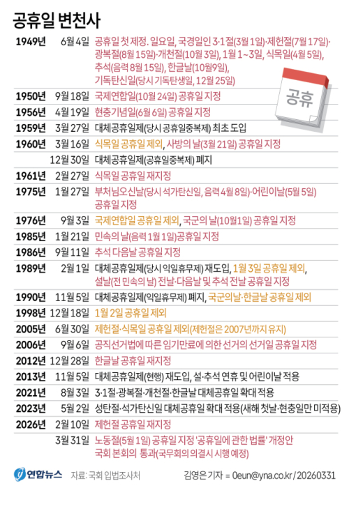 인사처는 법 개정에 맞춰 '관공서의 공휴일에 관한 규정' 개정 등 후속 조치를 신속히 추진해 올해부터 전 국민이 노동절에 쉴 수 있게 할 예정이다.