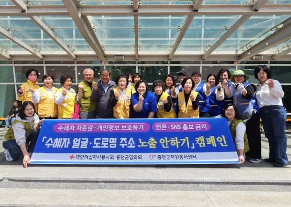홍천군자원봉사센터(센터장:한승환)와 대한적십자사봉사회 홍천군협의회(회장:김용덕)는 지난 16일 제46회 장애인의 날 기념 한마음체육대회가 개최된 홍천종합체육관에서 허종국 홍천군장애인복지관장, 함영인 (사)강원농아인협회 홍천군지부장, 강미영 홍천진달래로타리클럽 회장과 함께 복지 수혜자 자존감 보호를 위한 ‘수혜자 얼굴과 도로명 주소 등 개인정보 노출 안하기’ 캠페인을 개최했다.