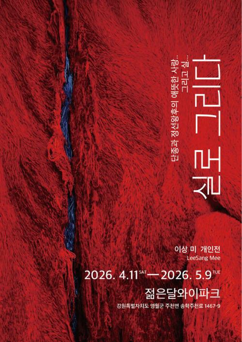 특히 이번 공연은 이상미 작가의 개인전인 ‘실로 그리다’ 전시가 열리는 압도적인 공간 속에서 진행돼 관람객들에게 더욱 깊은 울림을 선사할 예정이다. 지난 11일부터 시작된 이 전시는 손바느질로 완성된 대형 설치 작품으로, 전시의 ‘붉은 실’은 단종과 정순왕후를 잇는 ‘운명의 실’을 상징한다. 영월이 가진 역사적 아픔을 따뜻한 섬유 예술로 풀어낸 공간 속에서 공연이 융합되어 관람객이 직접 예술의 일부가 되는 특별한 기회를 제공할 것으로 기대된다.
