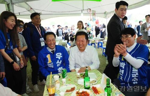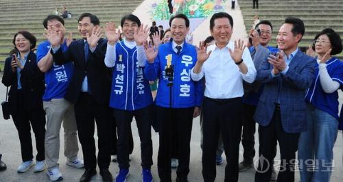 당 지도부와 현역 국회의원들도 전략지역을 지원하기 위해 발 벗고 나섰다. 정 대표는 지난 25일 영월 방문에서 김영환 당대표 정무실장, 김남국·박지혜 대변인, 김도균 도당위원장, 허필홍 홍천·횡성·영월·평창지역위원장 등과 함께하며 시민들에게 우상호 후보와 박선규 후보를 적극적으로 띄웠다.