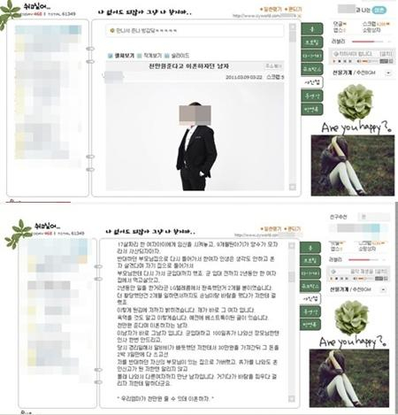 지난 10일 모 인터넷 게시판에는 ‘한 여자 인생망치고 앨범 낸 가수’라는 제목으로 신인가수 K를 고발하는 성격의 글이 올라왔다.