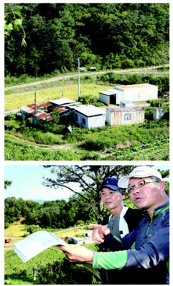 몇 개의 컨테이너박스와 마당과 주변의 밭