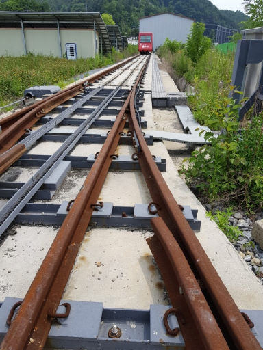 지난 25일 오후 삼척시 도계읍 하이원추추파크 인클라인트레인의 레일은 시뻘겋게 녹슬어 있었다. 2017년 3월 열차 설비 고장 뒤 수리도 하지 않고 1년3개월간 방치되고 있다.