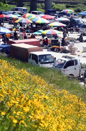 25일 강릉시 포남동 농산물새벽시장이 아침장을 보러 나온 시민들로 모처럼 활기를 띠고 있다.