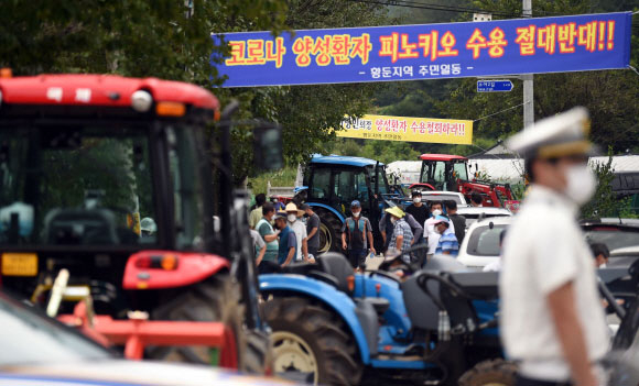 하지만 황둔리 주민 40여명이 생활치료센터 개설에 반대하며 이날 오전부터 농기계로 수련원 진입로를 막아서며 차질을 빚었다.