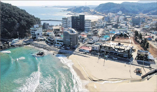 ■죽도 인근 20층 생활형 숙박시설 결국 '허가'=지난 3일 양양군 시변리 경로당 앞 죽도 방면을 바라보던 이모(90)씨와 최모(여·74)씨는 “평생을 바라보던 죽도와 바다를 이제 볼 수 없게 되는 건지 모르겠네”라며 한숨을 쉬었다. 해안에 인접한 죽도 바로 뒤편 3,359㎡의 대지에 1,246㎡ 건축면적의 20층 생활형 숙박시설이 들어서기 때문이다. 양양군은 지난해 12월15일 이 같은 내용의 건축 신청에 대해 허가했다. 이로써 이 일대 탁 트인 동해 바다를 누릴 수 있었던 권한은 숙박시설 거주자들만으로 축소되게 됐다.