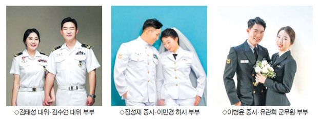 또 훈련전대 음탐부사관 장성재(28) 중사와 작전사령부 경남함 무장부사관 이민경(27) 하사 부부는 전 세계를 돌고 도는 연애를 거쳐 지난 15일 결혼식을 올렸다. 이들은 진해에서 처음 만나 연애를 시작했다. 장거리 연애로 애틋한 감정을 이어오다 2019년 장 중사가 세계일주코스로 5개월 간 순항훈련을 마치고 돌아온 후 결혼을 결심했다고 한다.