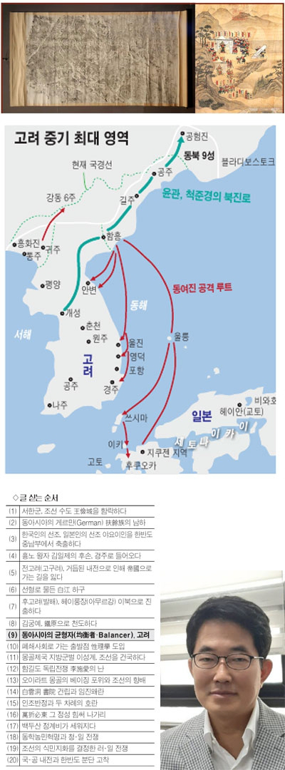 한편 금(金)나라 발상지인 숭가리 울라(松花江) 하구 회령(야청·阿城)은 12세기에 이르러서도 야성을 유지하고 있었다. 흑수말갈 계통 15만 완안부(完顔部) 주민이 사는 회령 일대 삼림·강·호수 지역은 여름철에는 몹시 덮고, 겨울철에는 몹시 추운 땅이었다. 완안부 포함 여진은 사냥과 어로를 생업으로 했으며, 뛰어난 전투기술을 갖고 있었다. ‘여진족 1만명이 차면 상대하지 말라'는 말이 있을 만큼 용맹했다. 여진족은 후고려(발해)가 멸망한 후 거란에 예속돼 공물(供物) 납부 등 각종 부담을 졌다. ‘금사(金史)'에 의하면, 금나라 시조 완안아쿠타의 조상 함보(函普)는 고려 출신이라 한다. 여진 완안부가 고려를 ‘부모의 나라'라고 한 것을 볼 때 여진은 고려를 거의 동족으로 대했던 듯하다. 12세기 들어 여진의 고려 국경 침입이 잦아졌다. 고려 예종(문제·文帝)은 1107년 윤관을 새로 편성한 부대인 별무반 사령관으로 삼아 여진 정벌을 시작했다. 출진한 고려 병사는 17만명에 달했다. 윤관은 무신(武神)으로 불린 척준경(拓俊京)을 앞세워 135개 여진 마을을 불태우는 등 여진군을 격파하고, 함흥평야부터 두만강 이북 280㎞(700리) ‘헤이룽장성 둥닝현 다오허진에 위치한 선춘령(이인철 교수 주장)'에 이르는 점령지역에 공험진성 등 아홉 개 성(동북 9성)을 축조했다(고려사 지리지, 신증동국여지승람, 성호사설). 조선 초기에 편찬된 고려사 지리지는 서문(序文)에서 ‘고려의 경계가 서북쪽으로는 전고려(고구려)에 미치지 못했으나, 동북쪽으로는 전고려의 경계를 넘어섰다'고 밝히고 있다. 고려는 7만5,000호가 넘는 남쪽 주민을 점령지로 이주시키는 사민정책을 실시했다. 윤관의 여진 정벌은 조선이 두만강 하구까지 영토를 넓히는 배경이 됐다. 고려가 17만 대군을 동원, 마운령 이남 함흥평야 부근만을 탈환했다는 과거 주장(한백겸과 정약용 등이 마운령 소재 진흥왕 순수비를 윤관의 정계비로 오인해 주장했으며, 일본침략기 이케우치 등이 뒷받침)은 논리적으로도 맞지 않다. 고려는 ‘동북 9성'을 오래 지키지 못했다. ‘세종실록 지리지' 등 사서는 성(城) 간 거리가 너무 멀어 지키기 어려웠다 한다. 고려군은 전쟁 초기 친고려적 여진 부족장 400여명을 불필요하게 살해했으며, 무고한 주민들을 학살하기도 했다. 이는 여진인들로 하여금 회령(야청)의 완안부를 중심으로 뭉치도록 만드는 원인이 됐다. 완안부에는 우야소, 아쿠타, 우키마이 등 영걸(英傑)이 잇달아 출현했다. 완안부는 고려의 공격과 거란의 압박을 뿌리치고, 1115년 헤이룽장과 지린, 갈라전(함경도와 연해주 등)에 이르는 광범한 지역의 여진 부족들을 결집, 금나라를 세웠다. 그해 북송이 금과 함께 거란을 정벌하려 하자 고려는 급히 북송에 사신을 파견, 위험성을 경고했다. 금나라는 거란군을 연파하고, 1120년 거란 수도 상경 임황부(바린좌치)를 점령했다. 금·북송 동맹군은 같은 해 거란 제2의 수도 옌징(베이징)마저 점령, 거란을 멸망시켰다. 이후 금과 북송 사이가 벌어져 금은 1127년 북송 수도 카이펑을 함락, 전(前) 황제 휘종과 현(現) 황제 흠종을 포로로 잡았다(靖康之變). 한족(漢族) 지상주의자인 홍콩계 중국작가 고(故) 진용은 무협소설 ‘사조영웅전'에서 ‘정강의 변'을 기억하자는 의미에서 한족 출신 주인공의 이름을 ‘곽정(郭靖)', 그의 친구 이름을 ‘양강(楊康)'이라고 짓는다. ‘정강의 변' 이후 고려는 북송과의 관계를 단절하고, 금과 사대관계를 맺었다. 고려군의 막강한 전투력을 경험했던 금나라 지도부는 고려를 시종일관 온건하게 대했다.