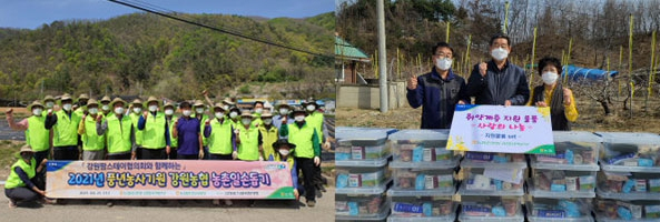 각종 재난재해 등으로 어려움을 겪는 농촌을 위한 지원 활동에도 강원농협이 앞장서고 있다. 지난 2월 기습 폭설과 한파로 15개 시·군, 2,000여 농가가 156억원 상당의 재산 피해를 입었다. 곧바로 강원농협은 신속한 피해 현장 점검을 실시한 뒤 42개 농축협에서 500여억원의 무이자 자금과 긴급 구호물품 등을 지원했다.