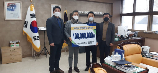 지난해 홍천고에 1,000만원을 기부한 김 대표는 올 2030년까지 10년 동안 매년 1,000만원씩 총 1억원을 기탁하겠다고 약속했다. 이날 장학금 약정식에는 이상근 교장을 비롯해 정관교 홍천고총동문회장 등 학교 관계자들도 참석했다.