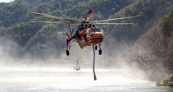 최문순 지사도 헬기 도입 지연에 답답함을 토로하고 있다. 최 지사는 지난 5일 삼척 산불현장을 찾아 “말이 (헬기) 전진 배치지 진화 헬기가 산불 현장까지 투입되는 데 두 시간이 소요된다”고 말했다.