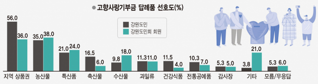 고향사랑 기부금 답례품으로는 지역상품권을 가장 선호하는 것으로 나타났다.