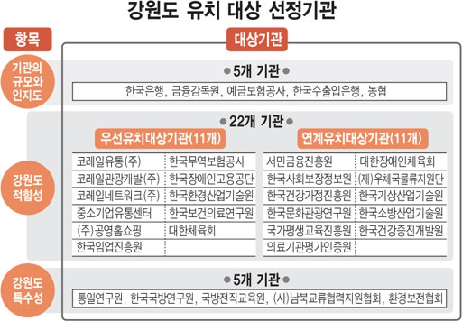강원도 관계자는 “32개 유치 대상 기관 중 최우선 유치 대상을 선정하는 등 선택과 집중을 통해 선제적 대응 전략 마련하겠다” 고 밝혔다.