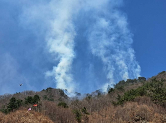 산림 당국은 이날 오전 6시 30분 헬기 10대를 투입해 진화 작업을 시작했다.
