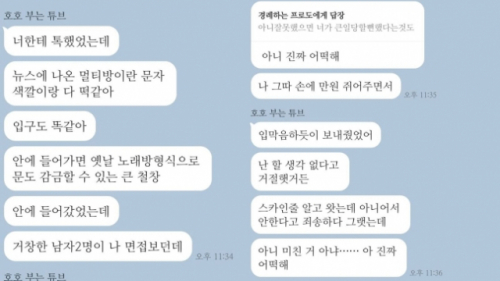 A씨는 과거 아르바이트 면접을 보러 갔다가 피해를 당할 뻔한 친구와 나눈 대화 내용도 공개했다. A씨의 친구는 “뉴스에 나온 간판 색깔, 입구 다 똑같다”며 “건장한 남자 2명이 나 면접 보던 곳”이라고 했다. 이어 “안에 들어가면 옛날 노래방 형식으로 감금도 할 수 있는 큰 철창(이 있다)”이라며 자세한 설명을 이어갔다.
