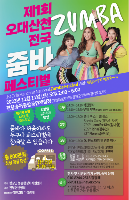 500명의 줌바인을 초청하는 이 행사는 줌바 시연과 함께 스페셜게스트 제니퍼 김(김나영), 리나(김수연), 플로란스(전서영)이 참가하는 줌바 마스터 클래스, 댄스타임 및 경품행사로 꾸며진다. 참가자는 김장축제 참가비 10,000원 할인, 대관령 AM호텔 50% 할인과 함께 800만원 상당의 경품행사 추첨 기회가 주어진다.