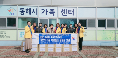 국제로타리 3730지구 8지역 동해 해송로타리클럽(회장:김소윤)은 28일 동해시 가족센터를 통해 소개받은 지역 조손가정, 취약가정, 다문화가정 등 50가구에 식료품 등 생필품 꾸러미를 전달했다.