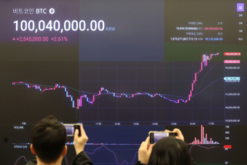 국내 가상자산 거래소 업비트에 따르면 이날 오후 4시32분 1비트코인 가격은 1억원을 기록했다. 이후 1억30만원까지 상승한 뒤 소폭 하락해 오후 5시37분 기준 9,980만원에 거래되고 있다.