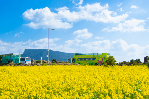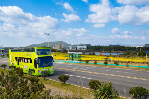정선 관광 명물로 자리매김한 와와정선 2층 투어버스가 제주도 곳곳을 달리며 ‘정선여행’을 홍보해 눈길을 끌고 있다.
