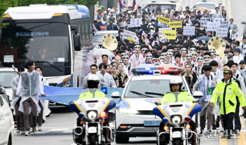 이후 참석자들은 중앙로터리 1.6㎞를 함께 걷는 ‘상록행진’ 행사에 참여해 독립운동 및 민주화에 앞장선 선배들의 넋을 기렸다.