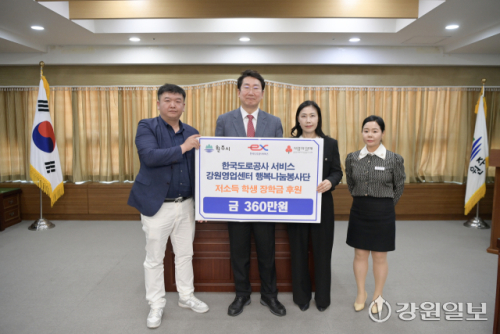 한국도로공사서비스 강원영업센터 행복나눔봉사단(대표:오병삼)은 지난 3일 원주시청 투자상담실을 방문해 저소득층 학생을 위한 장학금을 360만원을 기탁했다.