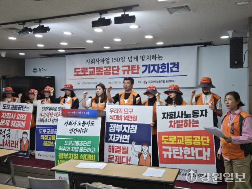 민주노총 민주일반연맹 공공연대노조 울산본부(이하 노조)는 29일 원주시청 2층 브리핑룸에서 기자회견문을 통해 “지난해 연말부터 공단 소속 자회사 노동자들이 장기 파업에 돌입했음에도 150일이 넘는 기간동안 공단은 책임을 회피하고 있어 파업이 장기화되고 있다”며 “기획재정부 정부 지침대로라면 기존 식대비 10만원에서 4만원을 추가한 14만원이지만, 문제 해결의 당사자인 공단은 노조의 면담 요구에 거부하고 있다”고 주장했다.