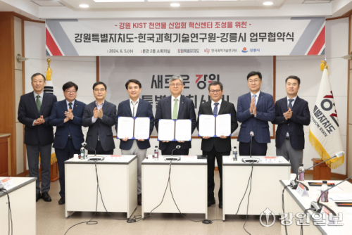 강원특별자치도와 한국과학기술연구원(KIST), 강릉시는 지난 5일 도청에서 천연물 산업화 혁신센터 조성을 위한 업무협약을 체결했다.