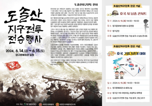 【양구】14일부터 15일까지 양구 이틀간 문화복지센터와 도솔산 일원에서 돌아오지않는 해병들의 넋을 기리는 2024 도솔산 지구전투 전승 행사가 펼쳐진다.