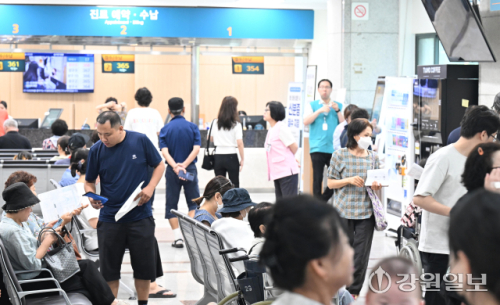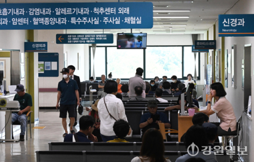 서울대병원에 이어 전국 병의원이 집단 휴진에 돌입한 18일 강릉 아산병원에는 정상운영으로 환자들로 붐비고 있다. 강릉=권태명기자