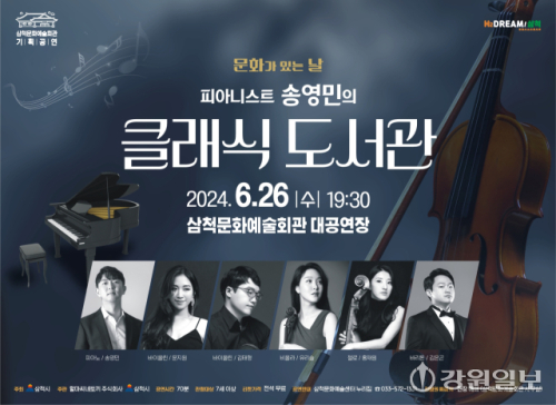 【삼척】삼척시가 26일 오후 7시30분 문화예술회관 소공연장에서 ‘피아니스트 송영민의 클래식 도서관’이라는 이름으로 국내 정상급 연주자들을 초빙해 공연을 갖는다.
