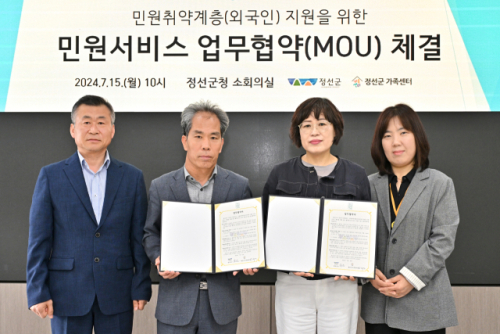 군은 15일 군청 소회의실에서 정선군 가족센터와 함께하는 ‘정선군 방문외국인 민원 통역서비스’ 사업 업무협약식을 체결했다.