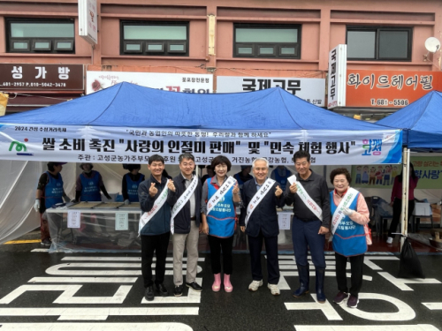 농협고성군지부(지부장:김창권)와 농가주부모임 고성군연합회(회장:박정옥)는 지난 21일 수성거리축제장에 쌀 소비촉진을 위한 농산물 직거래 장터를 운영하고, 고향사랑기부제 홍보캠페인도 펼쳤다.
